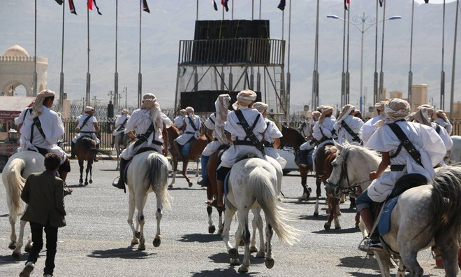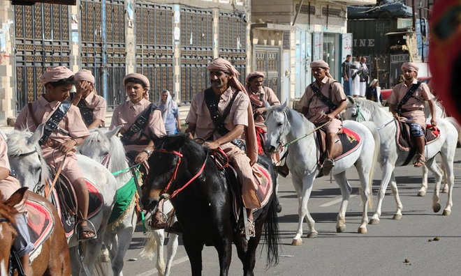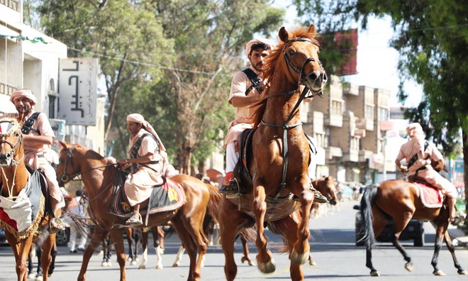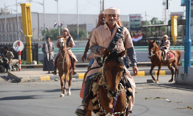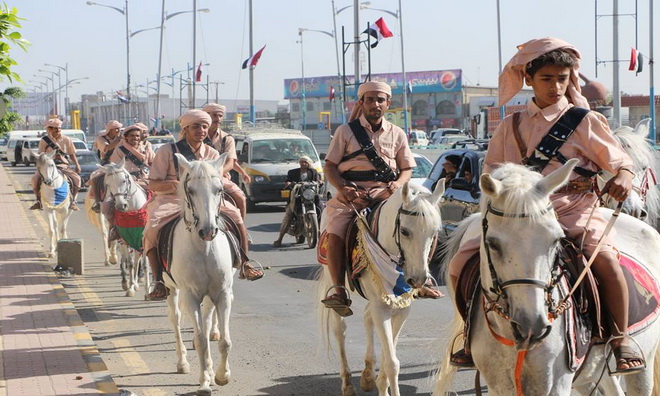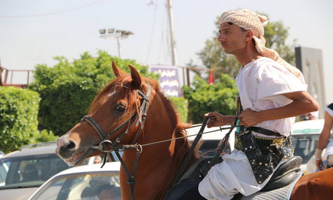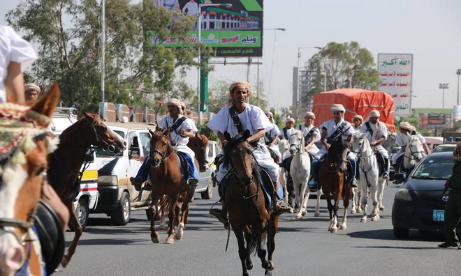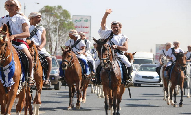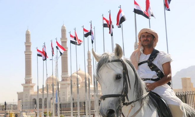 دشن اليمنيون احتفالاتهم بالذكرى الــ 26 للعيد الوطني للجمهورية اليمنية 22 مايو بعروض استثنائية فلكلورية بالخيول جاب فيها عارضون شوارع العاصمة صنعاء ابتهاجا بالمناسبة.
