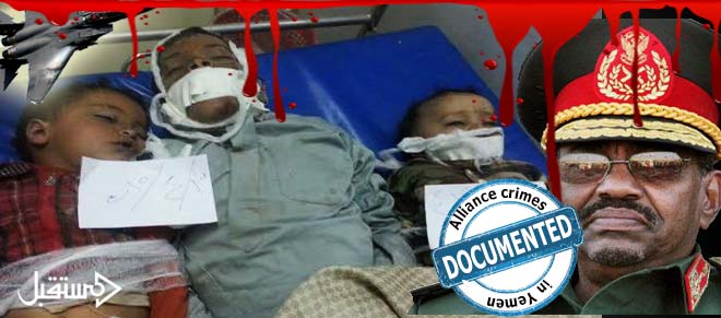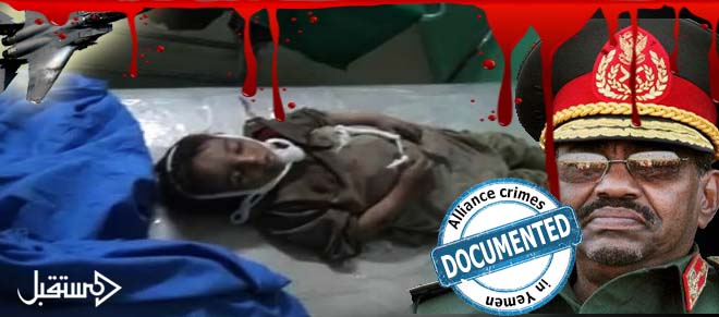 جرائم الابادة للديكتاتور السوداني عمر حسن البشير المطلوب للمحكمة الجنائية الدولية بجرائم حرب، تجاوزت الاراضي السودانية إلى اليمن في الغارات الوحشية التي شاركت فيها طائرات حربية تابعة لنظام الديكتاتور البشير على المدن والقرى والاحياء السكنية، ضمن تحالف العدوان السعودي على اليمن.