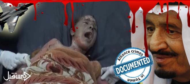 تقدم الوقائع الموثقة للغارات التي شنها تحالف العدوان السعودي على المدن والقرى والأحياء السكنية في اليمن خلال العام الماضي شهادات للتاريخ على ججم الجرائم المروعة التي ارتكبها تحالف الشر بحق اطفال اليمن.