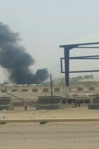 اصيب اربعة عمال نفطيون بجروق جراء حريق هائل اليوم بمحطة لتعبئة الغاز بمنشآة صافر النفطية بمحافظة مأرب، قالت مصادر نفطية أنه أدى الى التهام المحطة صهريجا لنقل الوفود..