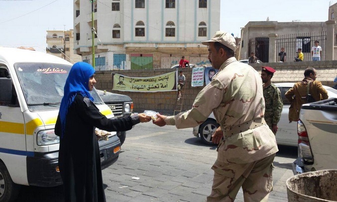 نشرت الهيئة الإعلامية التابعة لجماعة انصار الله اليوم عددا من كوادرها في شوارع واحياء امانة العاصمة صنعاء حاملين اكياس الهدايا العيدية في اطار الفعاليات التي تنظمها الهيئة تحت شعار ” عيدنا .. جبهاتنا” .