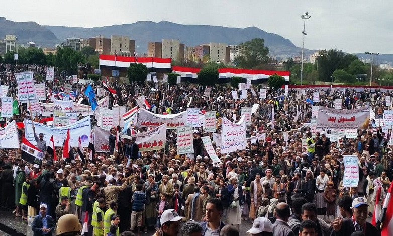 رغم غزارة الغيث على العاصمة وسيوله التي قطعت الطرق احتشد اليوم مئات الآلاف من اليمنيين في ميدان السبعبين للمشاركة في تظاهرة تأييد المجلس السياسي والتي سجلت حضورا كبيرا للمشاركين الذين أعلنوا تأييدهم المطلق لخطوة توقيع انصار الله وحزب المؤتمر واحلفائهم من القوى ا لسياسية المناهضة للعدوان السعودي تشكيل المجلس السياسي الأعلى لادارة شؤون البلاد وفقا للدستور النافذ.