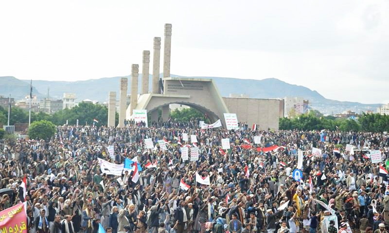 في واحدة من اكبر التظاهرات الشعبية التي تشهدها العاصمة صنعاء اجتاح اليوم طوفان بشري هائل ميدان السبعين ومحيطة والشوارع المؤدية اليه في تظاهرة مليونية جاءت استجابة لدعوة اللجنة الثورية العليا للتعبير عن تأييد الشارع اليمني للاتفاق الموقع بين انصار الله وحزب المؤتمر وحلفائهم من القوى السياسية ا لمناهضة للعدوان السعودي بشأن تشكيل المجلس السياسي الأعلى لادارة شؤون البلاد وفقا للدستور النافذ فيما أعتبر اكبر استفتاء شعبي لهذا الحدث السياسي الهام.