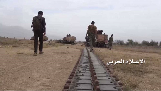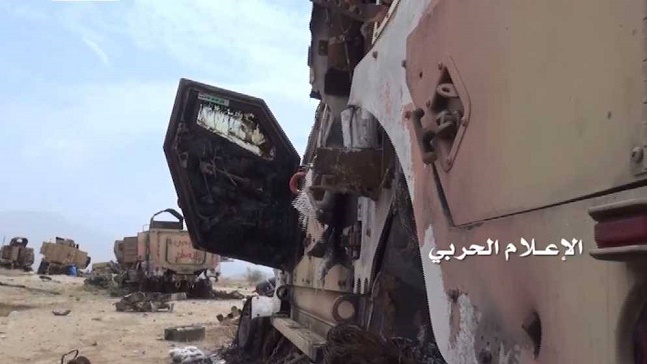 وتوثق الصور لقطات لطائرات تجسس سعودية ودبابات ومدرعات وآليات دمرتها صواريخ الجيش واللجان الشعبية فضلا عن عدد من المباني المدمرة.