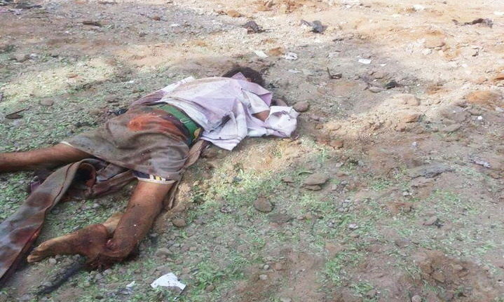 اشلاء ضحايا المجزرة السعودية من المدنيين بعدما تناثرت في فناء المستشفى