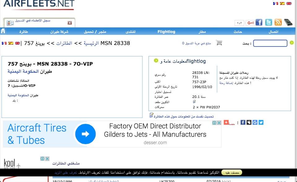 روابط توضح موصفات الطائرة التي اشتراها هادي تكشف عدم صلاخية الطائرة المشتراة.