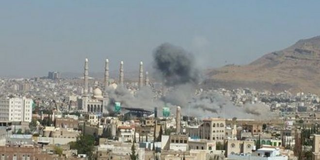 عاود طيران العدوان السعودي اليوم شن غاراته على العاصمة مستهدفا بغارة محيط جامع الصالح خلف بمنصة الاحتفالات في ميدان الـ 70 بصنعاء وذلك بعد ساعات من شنه غارتين على محيط المنصة في ساعات الفجر الأولى من هذا اليوم الإثنين بين 25 غارة شنها على مناطق متفرقة من العاصمة صنعاء وضواحيها.