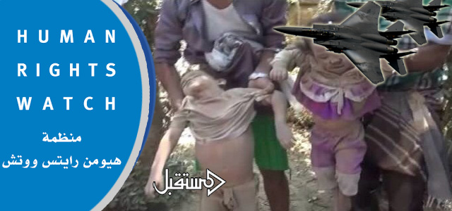 أكدت منظمة “هيومن رايتس ووتش” أن الضربات الجوية التي ينفذها التحالف العربي بقيادة السعودية في اليمن وأدت إلى مقتل آلاف المدنيين ترتقي إلى مستوى جرائم حرب، وترافق ذلك مع حصار شامل يفرضه التحالف بما يفاقم الازمة الانسانية .