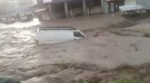 وتكشف الصور، تدفق سيول غزيرة متسببة بأضراراً جسيمة في منازل المواطنين وممتلكاتهم على امتداد المناطق الغربية من المدينة، وجرفت معها عدد من السيارات ومنازل الصفيح وتضرر منازل للمواطنين وتوقف الطرقات.