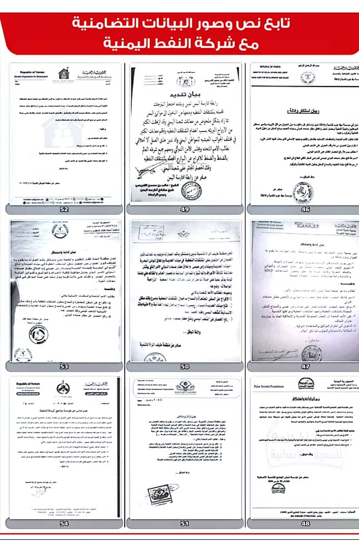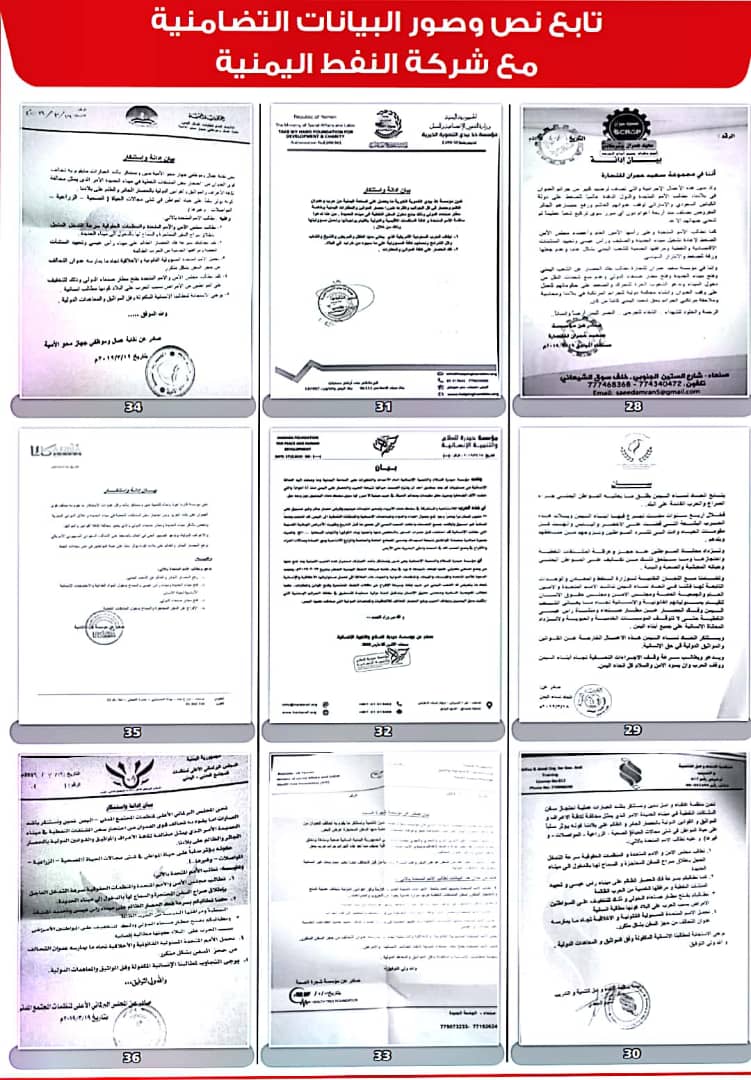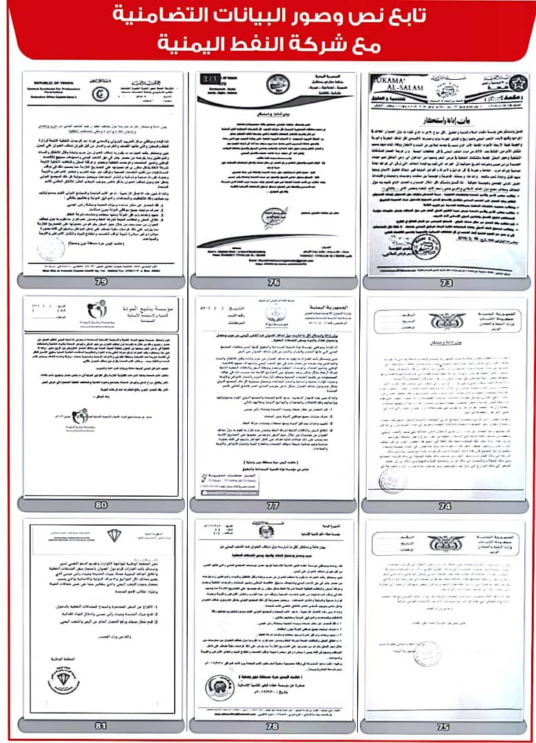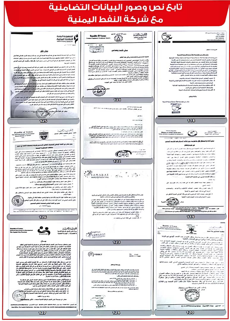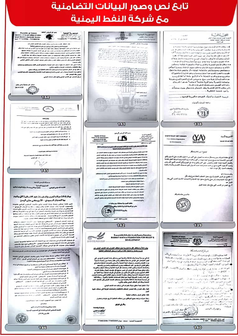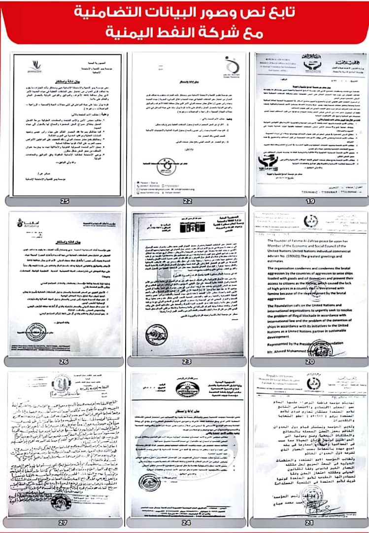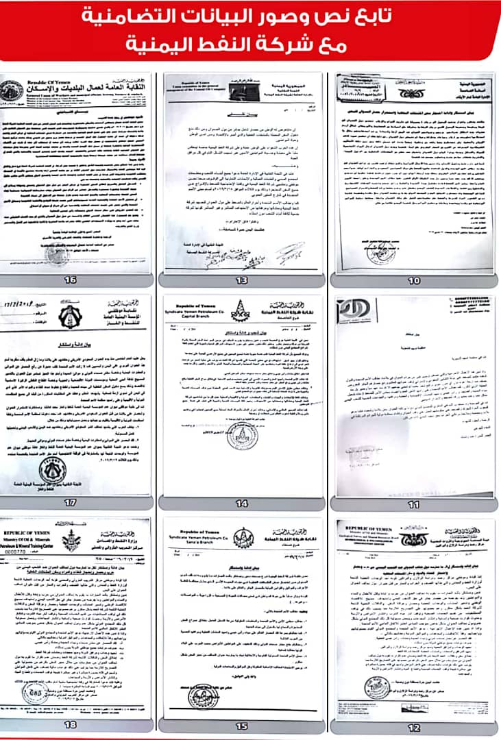 وأصدرت 208 منظمات ونقابات عمالية ومهنية بيانات، أعلنت فيها تضامنها مع شركة النفط اليمنية ضد ما وصفتها بـ”الإجراءات التعسفية التي تمارسها قوى التحالف والحصار لمنع وصول البواخر المحملة بالمشتقات النفطية إلى ميناء الحديدة”.