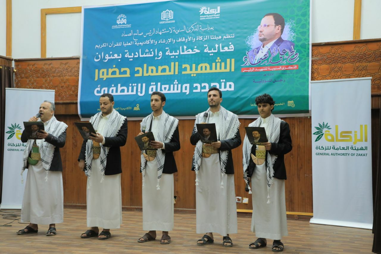 نظمت هيئتا الزكاة، والأوقاف والإرشاد، والأكاديمية العليا للقرآن الكريم، اليوم، فعالية خطابية وإنشادية بمناسبة الذكرى السنوية لاستشهاد الرئيس صالح الصماد، تحت شعار “الشهيد الصماد.. حضور متجدد وشعلة لا تنطفئ”.