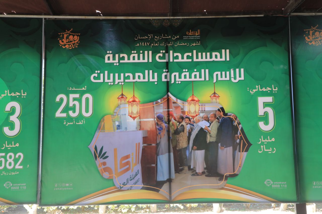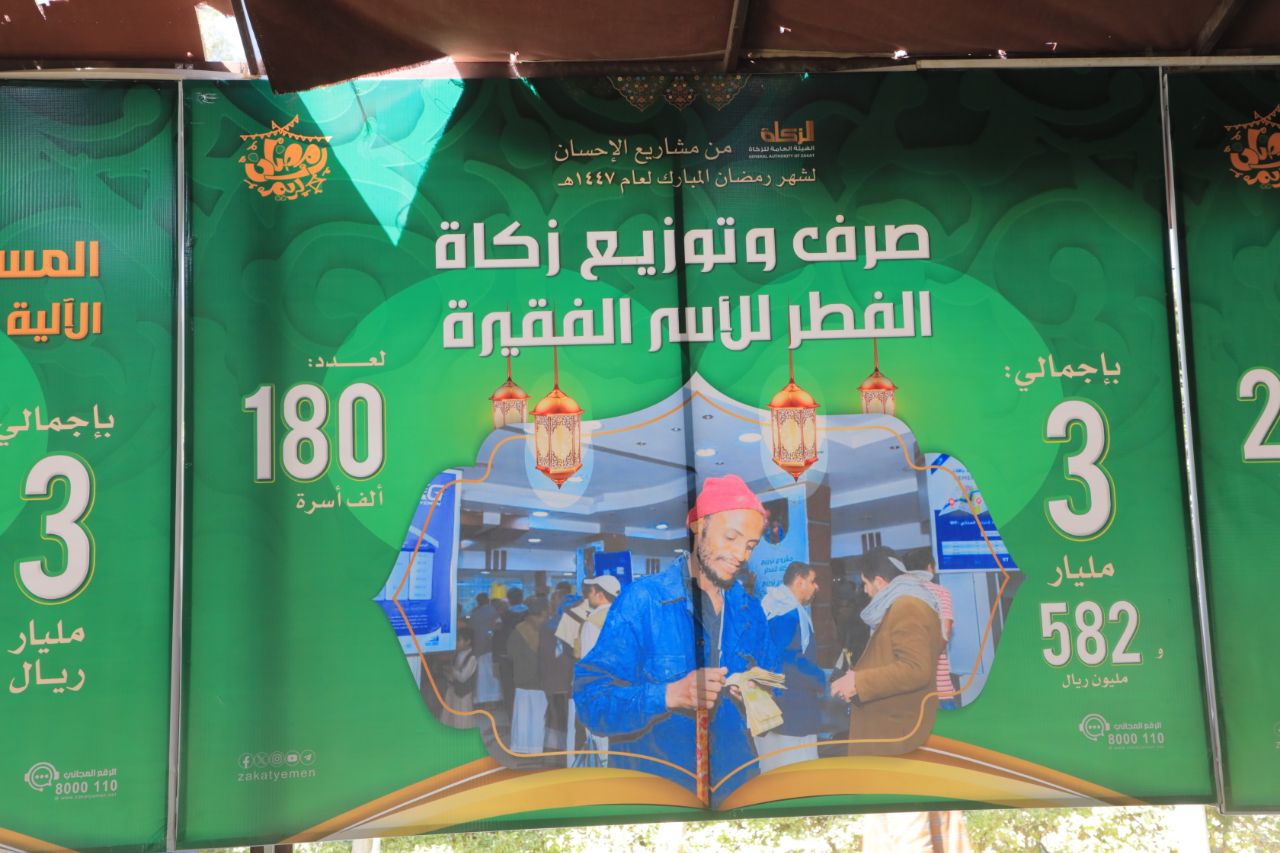 من جانبه أكد رئيس الهيئة العامة للزكاة الشيخ شمسان أبو نشطان أن مشاريع الإحسان الرمضانية توزعت على ثلاثة مجالات، الأول شمل مشاريع الصرف اللامركزي عبر مكاتب الزكاة بالأمانة والمحافظات الذي يصل خيره للأسر العاجزة عن العمل شهرياً لعدد 43 ألف أسرة بإجمالي مليارين و579 مليون ريال، والمساعدات النقدية للأسر الفقيرة لعدد 250 ألف أسرة بتكلفة 5 مليارات ريال، وصرف وتوزيع زكاة الفطر لعدد 180 ألف أسرة فقيرة بقيمة 3 مليارات و582 ألف أسرة، وكسوة العيد العينية بالأمانة لعدد 75 ألف مستفيد بإجمالي 475 مليون ريال، ومساعدات الغارمين لعدد ألف و 100 مستفيد بتكلفة 321 مليون ريال، والمساعدات العلاجية لعدد 4 آلاف مستفيد بتكلفة مليار ريال.